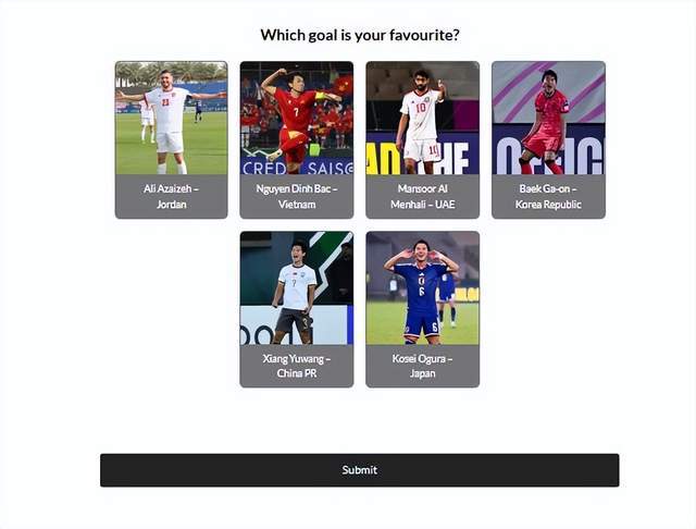 这次亚足联通过筛选,入围的6个进球,分别来自6个国家,第一个进球是约旦球员阿里-阿赛扎对日本打进的一记精彩兜射,这是一次全队的精彩配合。