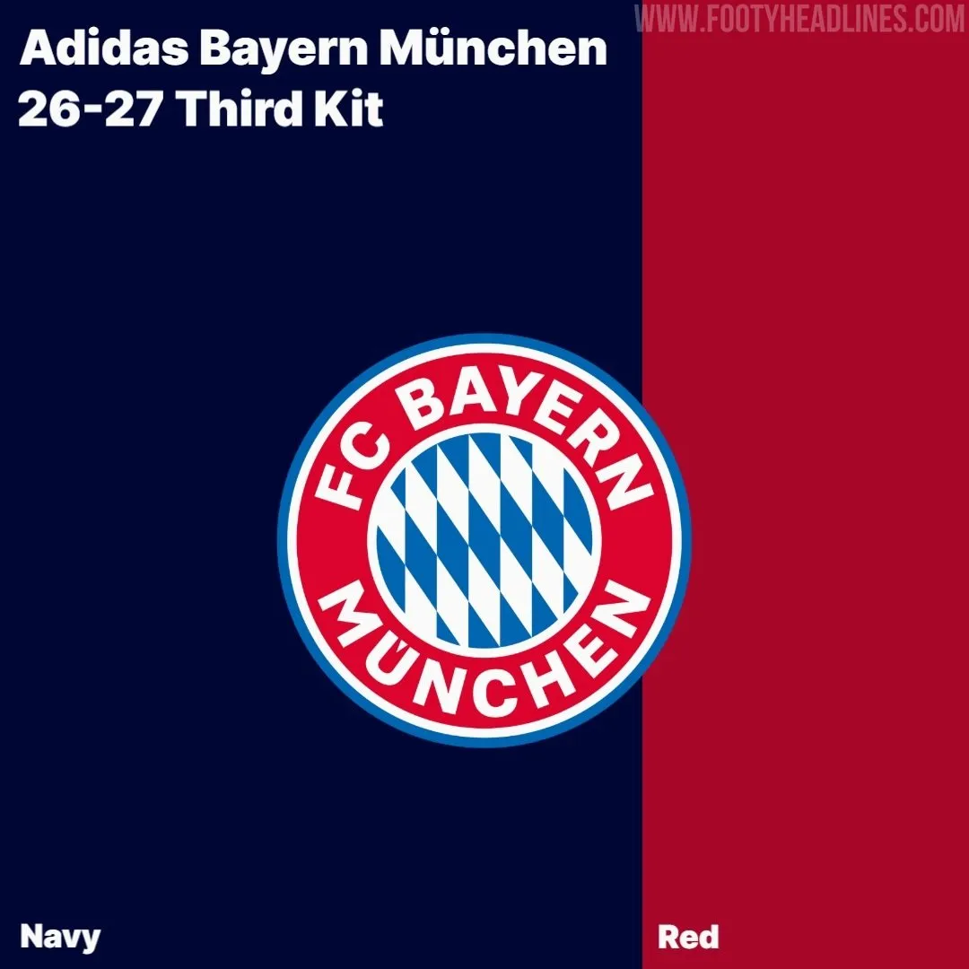 球衣网站:拜仁2026/27第三客场球衣采用深蓝搭配红色